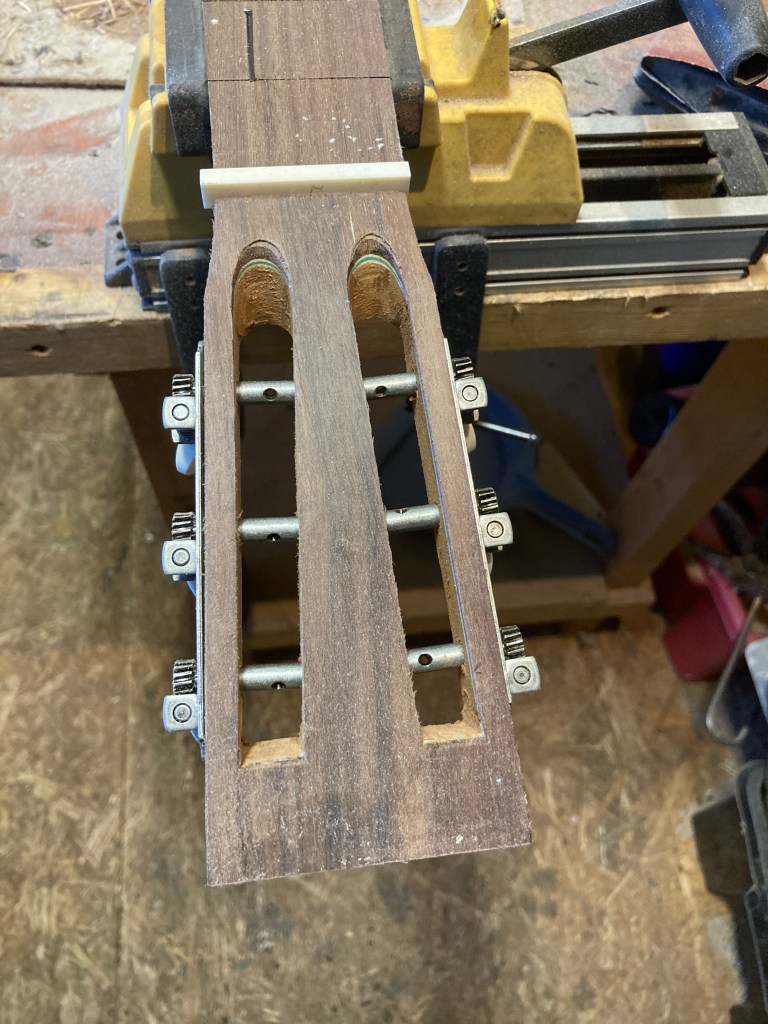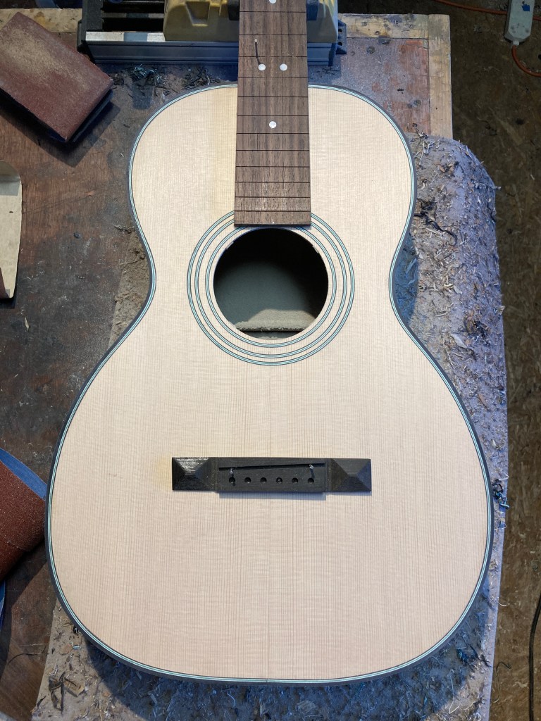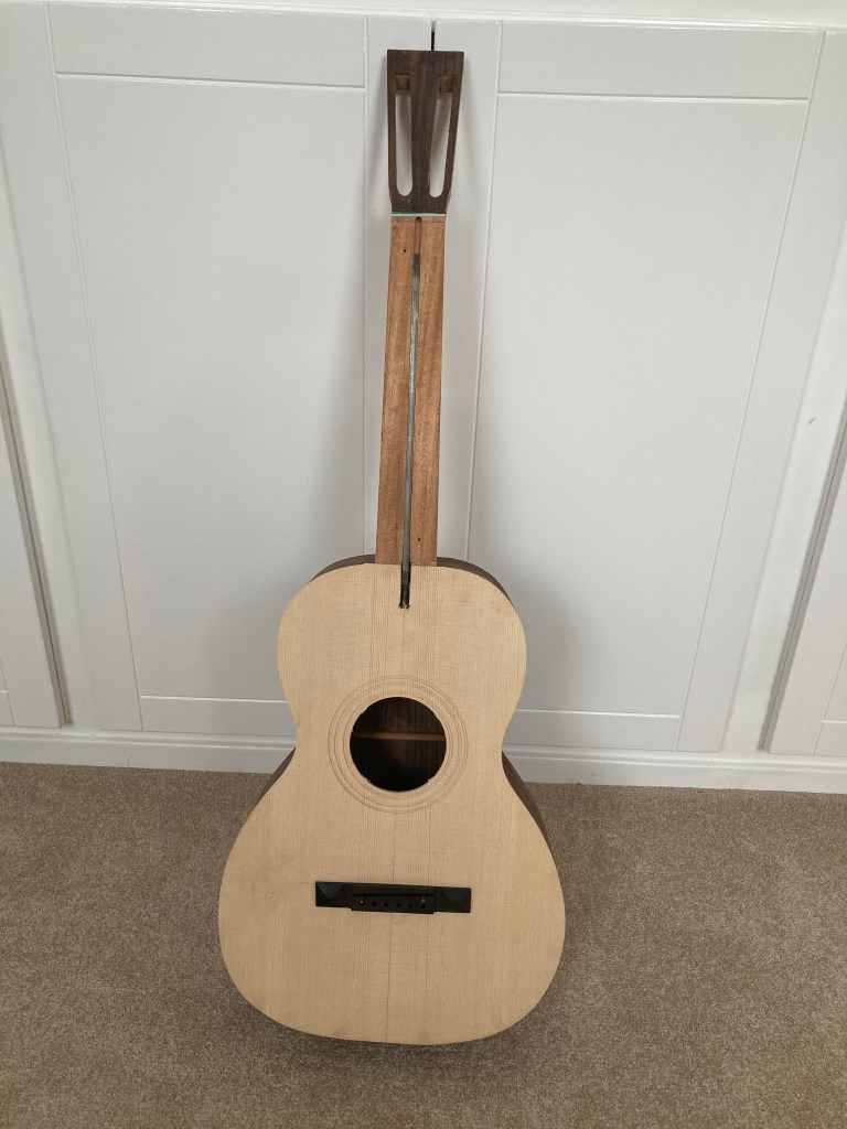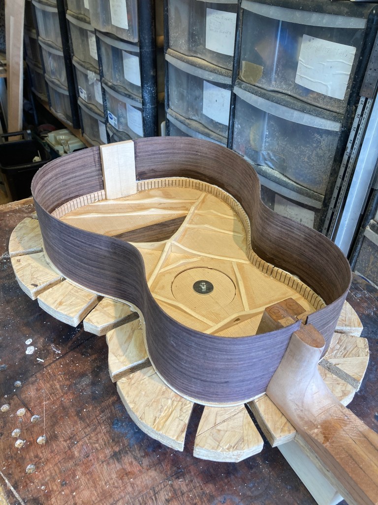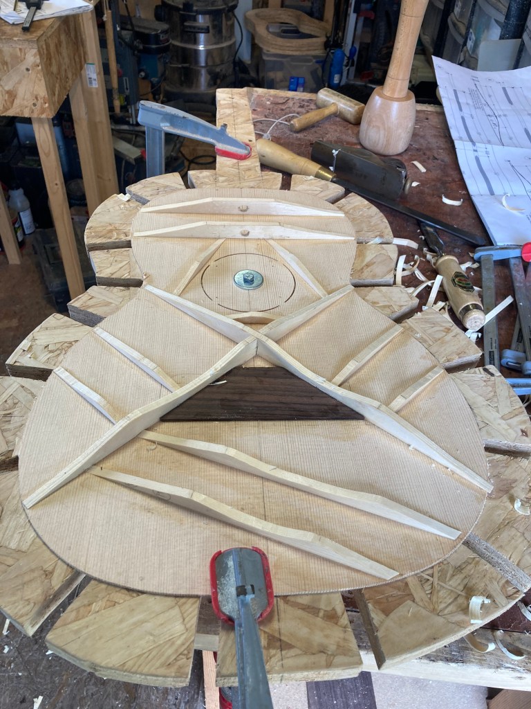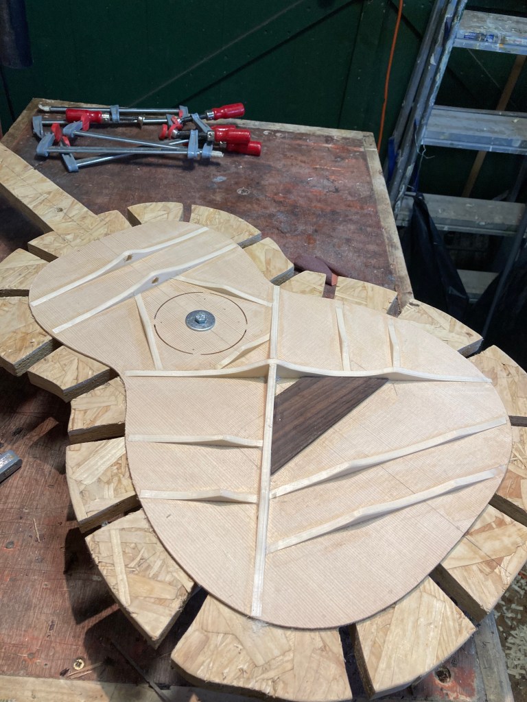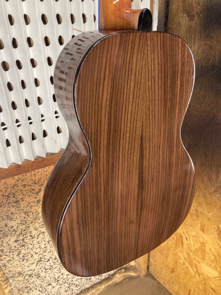 The lower asymmetric braces provide extra stiffness to the treble side of the guitar ensuring a more brilliant response to the higher tonal frequencies