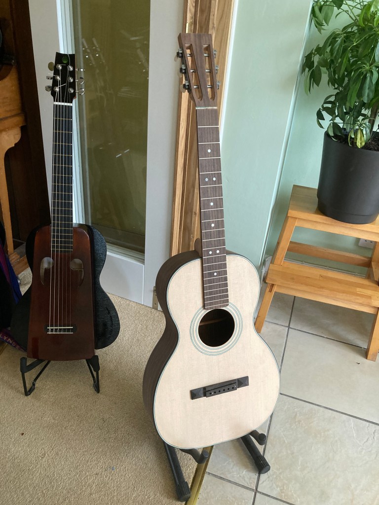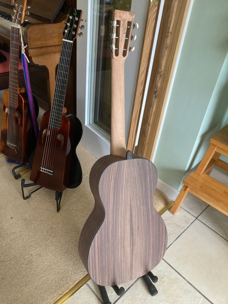 The Martin 0-28 was an early guitar coming out of the American workshops of Fredric Martin. One can see the influence of the of the Viennese school in it’s size and shape. And it would of been a familiar pattern to him when he worked at the Stauffer factory before his emigration to America.