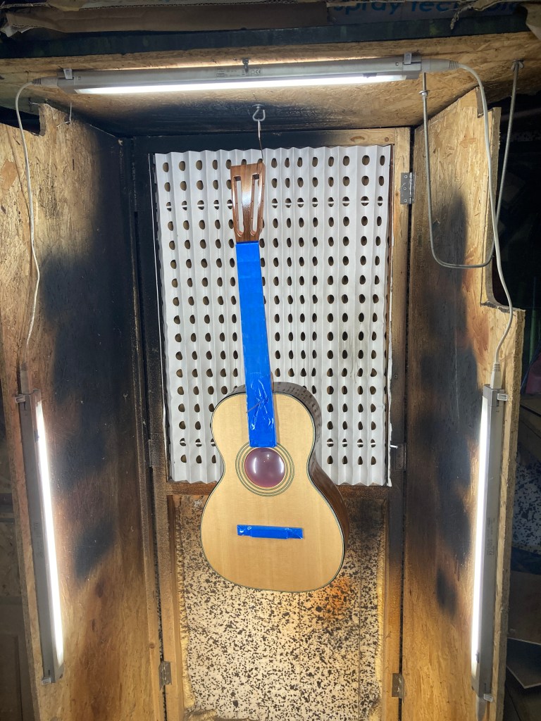 The position of the X-bracing was moved forward, on most Martin guitars in 1955 into what is known as the forward shifted position but in order to maintain the authentic sound of this guitar it will remains in it’s original position.